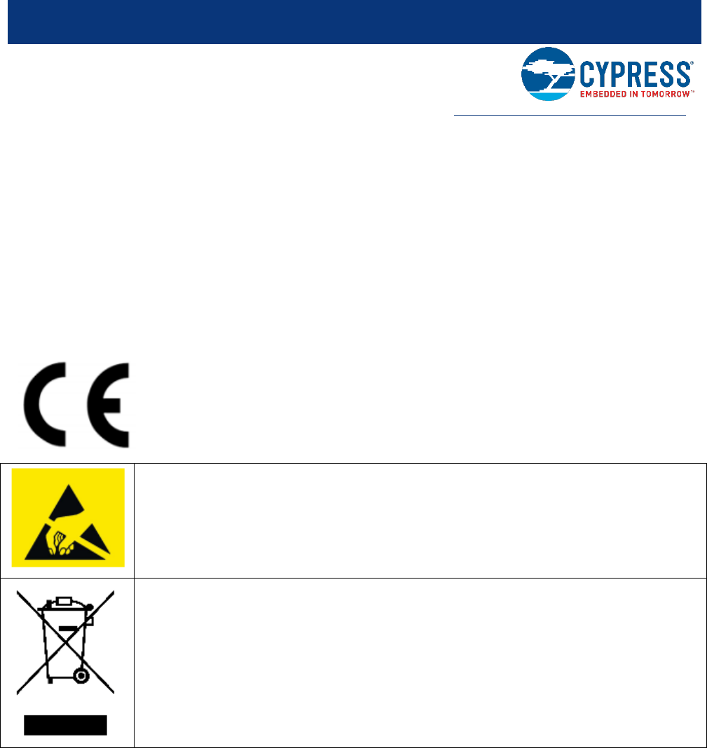 The CY4500 EZ-PD™ Protocol Analyzer board contains electrostatic discharge (ESD)- sensitive