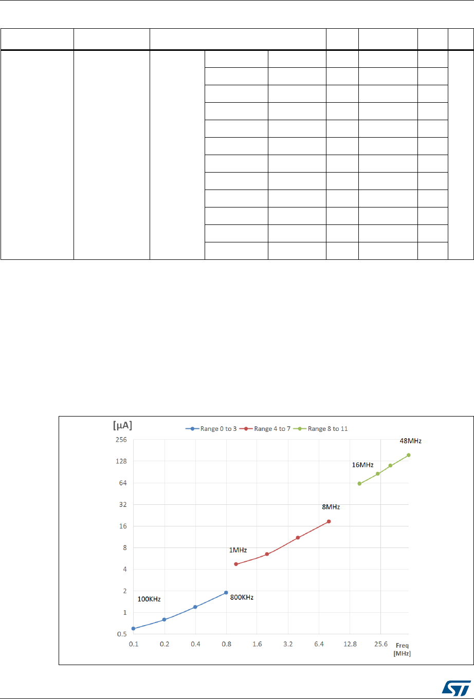 – Parameter column on Table 34: Current consumption in