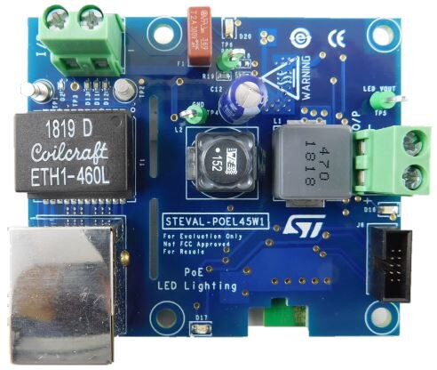 STMicroelectronics' STEVAL-POEL45W1 PoE powered smart LED lighting with BLE control help improve energy efficiency